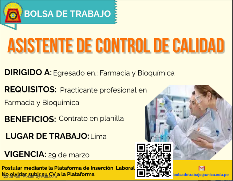 #BolsadeTrabajo | Asistente de control de calidad.
