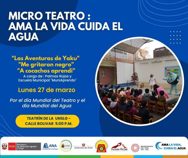 #DíadelTeatro | El lunes 27 de marzo, se realizará en el teatro Abraham Valdelomar de la UNICA la presentación del micro teatro: AMA LA VIDA CUIDA EL AGUA.