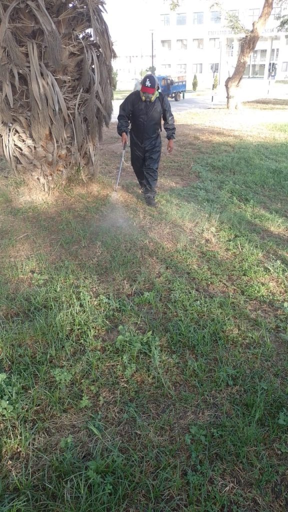 #CiudadUniversitaria | El personal de Servicios Generales continúan realizando acciones de recuperación de las areas verdes, en esta ocasión se trata del control con herbicidas de las malezas.