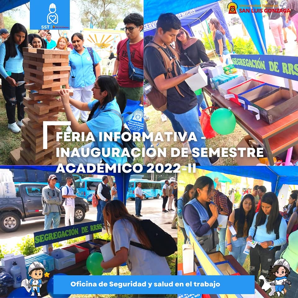 SST | La Oficina de Seguridad y Salud en el Trabajo participó en la Feria Informativa con ocasión de la inauguración del Semestre Académico 2022 II. Se realizó un circuito de dinámicas referente a cada área que la conforman, compartiendo información esencial ante el inicio de clases, promoviendo una cultura de prevención y medio ambiente a beneficio de toda la Comunidad Universitaria 🤝📣✨