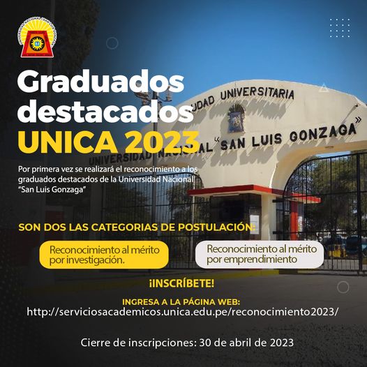 #ReconocimientoUNICA | La Universidad Nacional «San Luis Gonzaga» a través de la Dirección de Servicios Académicos, realizará por primera vez el reconocimiento en acto público a los graduados destacados. ![]()