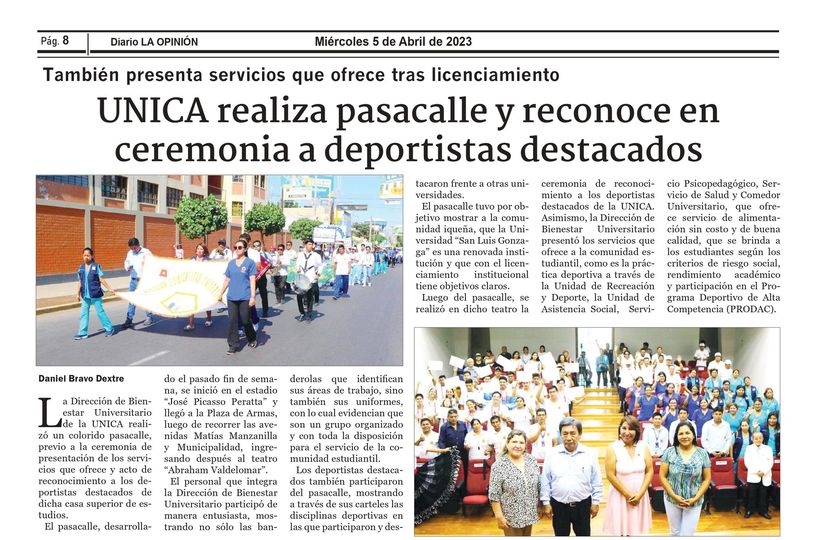 #BienestarUniversitario | La Dirección de Bienestar Universitario entregó diplomas de reconocimiento a los estudiantes de la UNICA que destacaron en las disciplinas deportivas de futsal, básquet y atletismo durante el año 2022.
