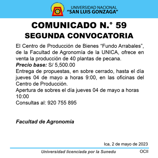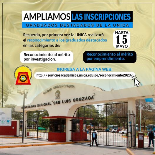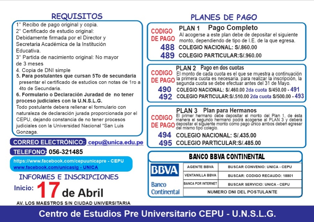Información del proceso e inscripciones en: https://admision.unica.edu.pe