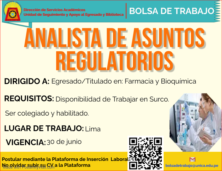 Bolsa de Trabajo | Analista de asuntos regulatorios
