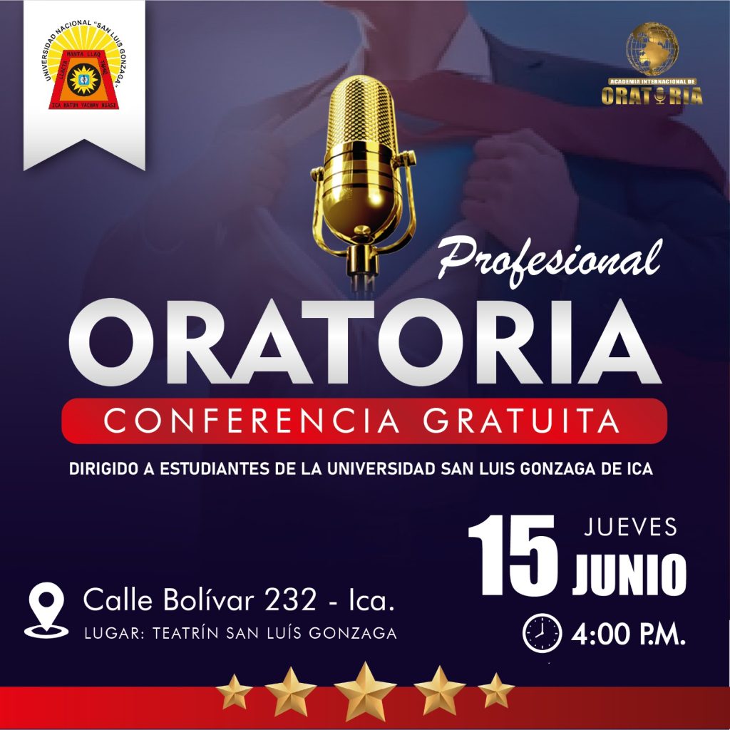 #Oratoria | Academia internacional de oratoria, con el patrocinio de la «Universidad San Luis Gonzaga de Ica», estará dictando una conferencia presencial dirigido a la comunidad universitaria.