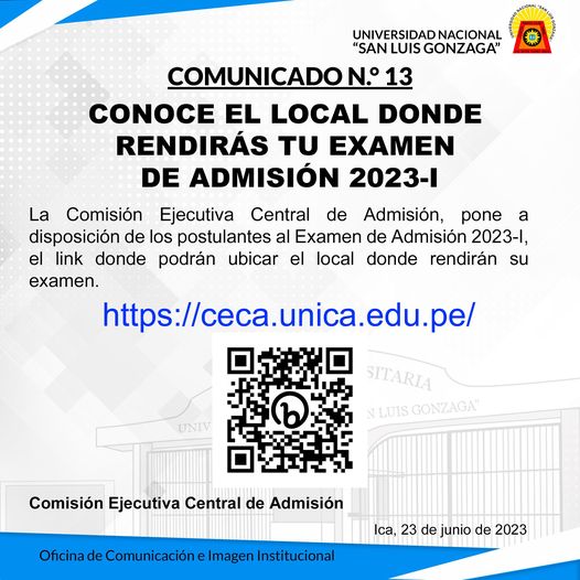 #Admisión2023I | La Comisión Ejecutiva Central de Admisión, pone a disposición de los postulantes al Examen de Admisión 2023-I, el link donde podrán ubicar el local donde rendirán su examen.