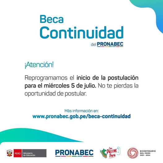Se ha reprogramado la fecha de inicio de postulación para la #BecaContinuidad . ![]()