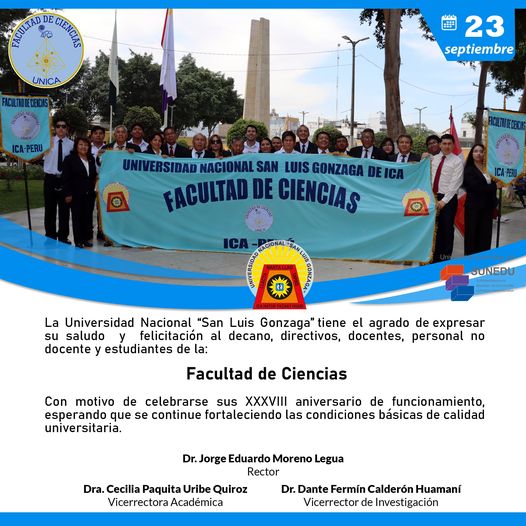#SaludosInstitucionales | La Universidad Nacional “San Luis Gonzaga” tiene el agrado de expresar su saludo y felicitación al decano, directivos, docentes, personal no docente y estudiantes de la: FACULTAD DE CIENCIAS.