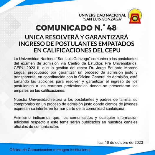 En la ceremonia realizada esta mañana en la ciudad universitaria, el rector de la UNICA Dr. Jorge Eduardo Moreno Legua, destacó la importancia de avanzar hacia la normalización de las actividades académicas y la instauración de un clima de paz y tranquilidad en la institución.