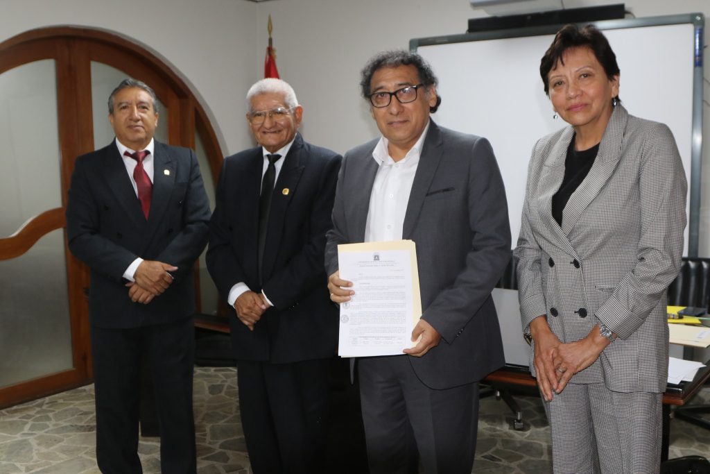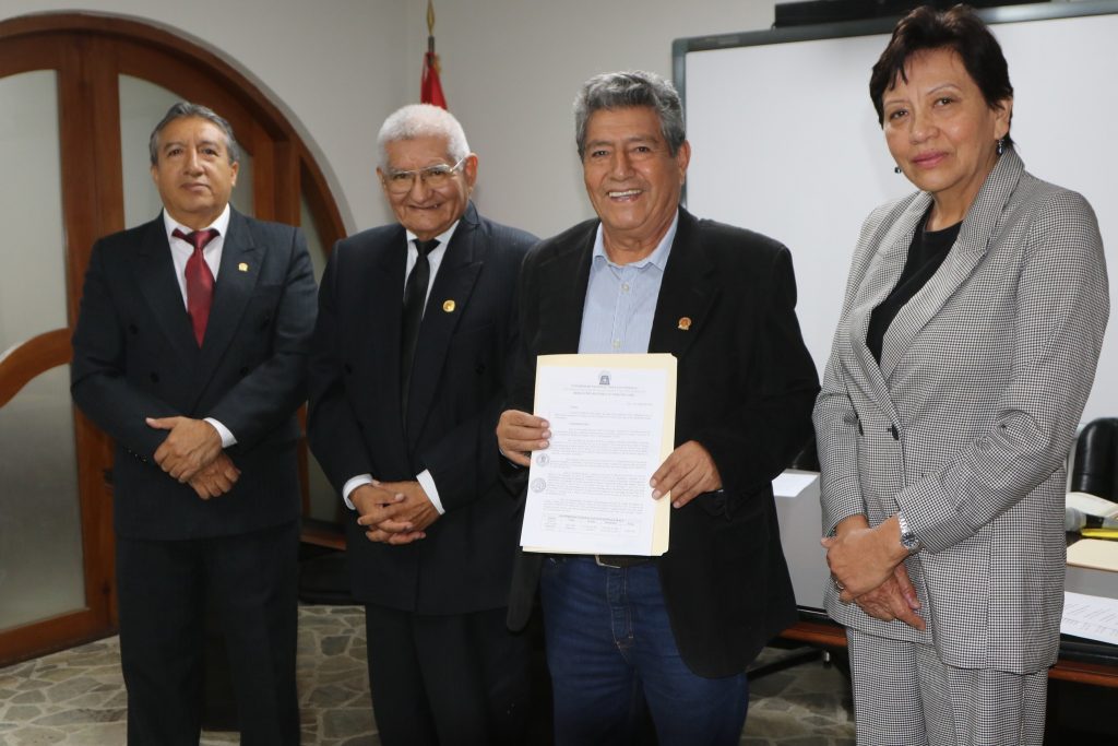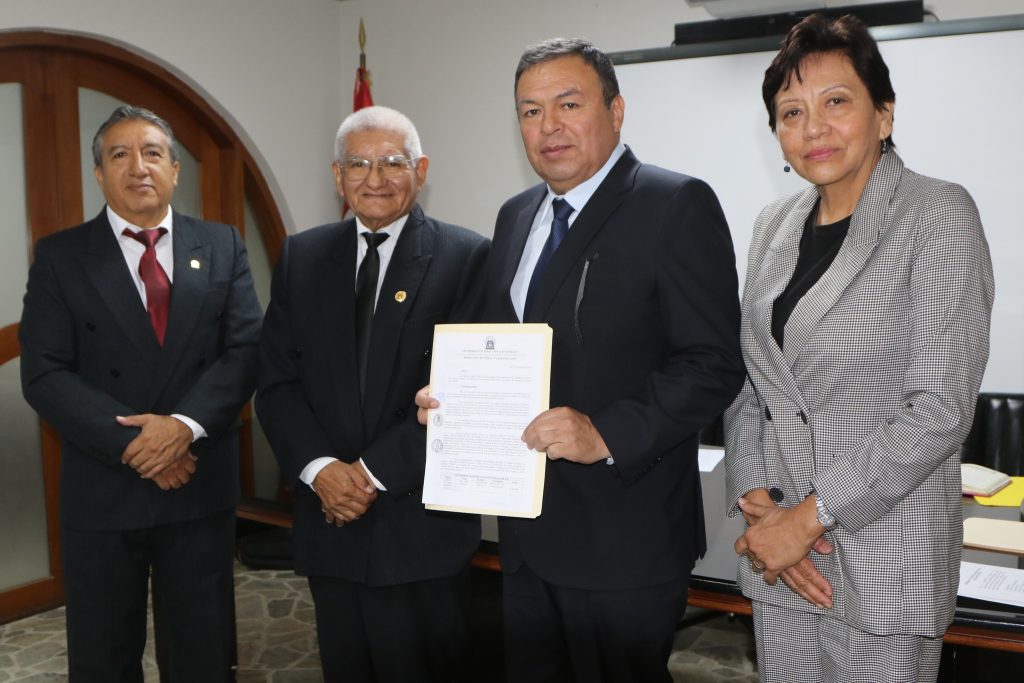 Asimismo, se entregó la resolución rectoral al Dr. Freddy Yonell Calderón Ramos, quien asume el cargo de director de la Escuela de Posgrado.