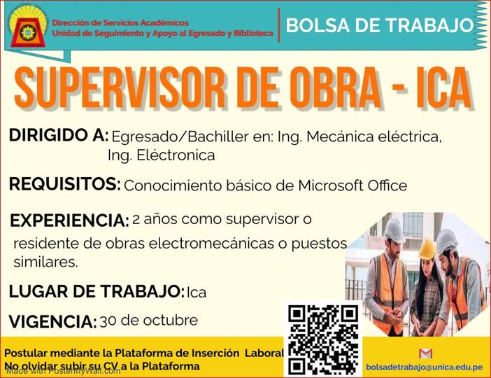 #ofertalaboral | Oferta laboral supervisor de obra – Ica