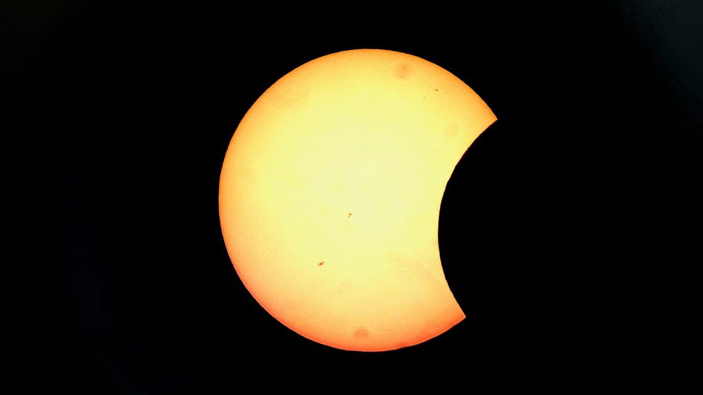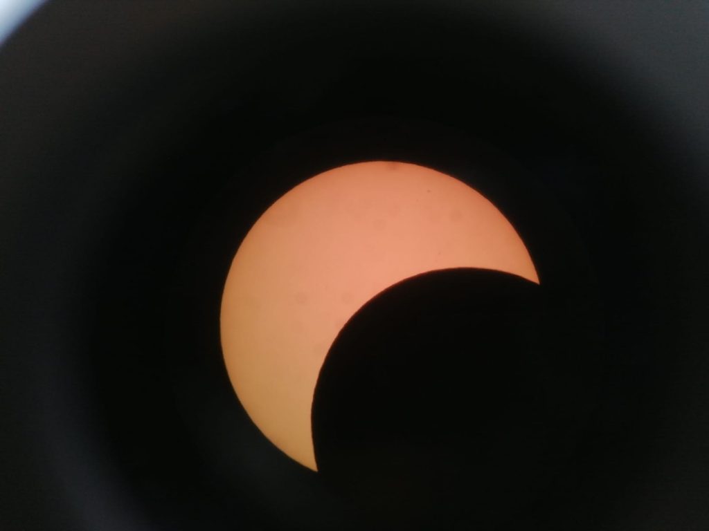 #FacultadCiencias | El sábado 14 se pudo apreciar el Eclipse solar anular. Así va el eclipse parcial visto por el telescopio takahashi (15 c.m.) de la facultad de Ciencias.