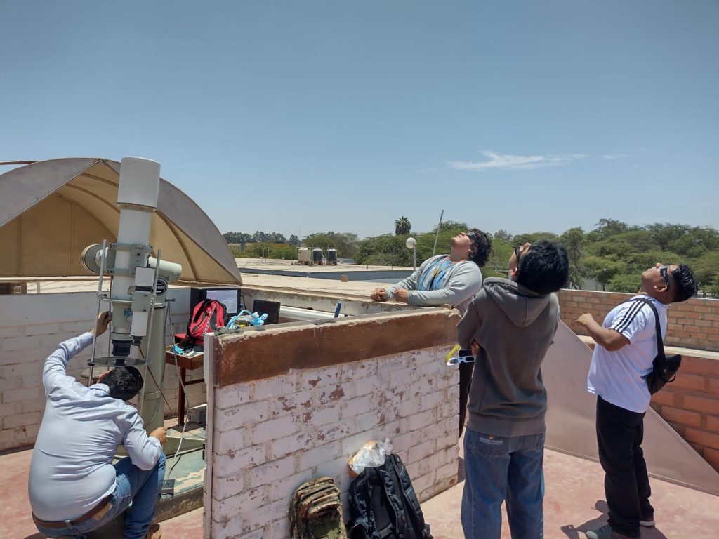 #FacultadCiencias | El sábado 14 se pudo apreciar el Eclipse solar anular. Continúa mostrando imágenes del eclipse parcial ( 03:11) – telescopio takahashi (15 c.m.) Reportado por el grupo de astronomía del Centro de Investigación de la Actividad Solar y sus Efectos Sobre la Tierra, CIEASEST, con el docente Mag. René Loayza y el asistente de investigación Lic. Yovanny Buleje. Ica, 14 de octubre de 2023.