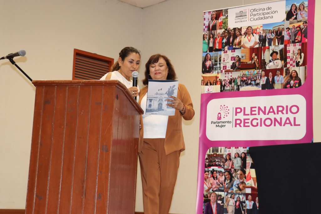 #Rectorado | La Dra. Cecilia Paquita Uribe Quiroz, rectora (e) de la Universidad Nacional “San Luis Gonzaga”, asistió a la clausura del evento “Parlamento Mujer 2023 – 2024”, organizado por la primera vicepresidencia del Congreso de la República, en coordinación con la Oficina de Participación Ciudadana que dirige la congresista Karina Juliza Beteta Rubín, la misma que reconoció con un diploma de honor a nuestra rectora por el apoyo brindado para la organización del este evento.
