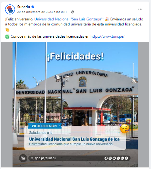 #AniversariodeCreación | Desde su FanPage oficial La Superintendencia Nacional de Educación Superior Universitaria nos envía su saludo por los 68º aniversario de creación institucional