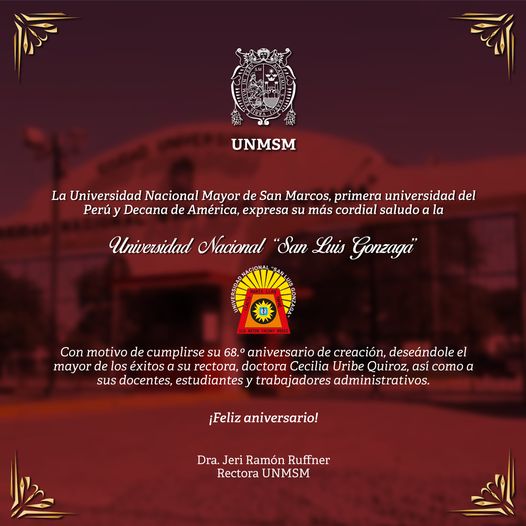 #AniversariodeCreación | Desde su FanPage oficial la Universidad Nacional Mayor de San Marcos mediante su rectora Dra. Jeri Ramón Ruffner nos envía su saludo por los 68º aniversario de creación institucional.