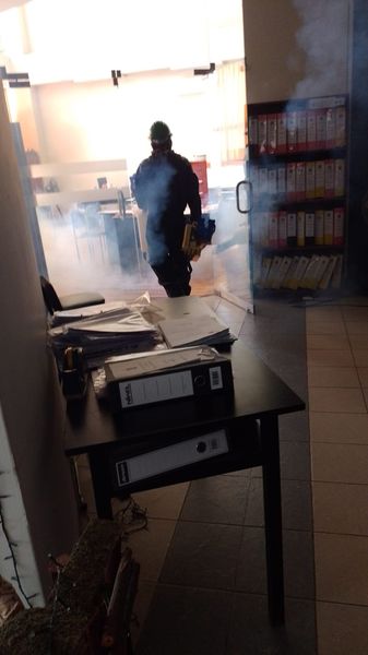 #Fumigación | Personal de la Unidad de Servicios Generales realizó la fumigación en las oficinas de la Biblioteca central y OCI, acciones enfocadas contra el dengue y el virus de la COVID-19.