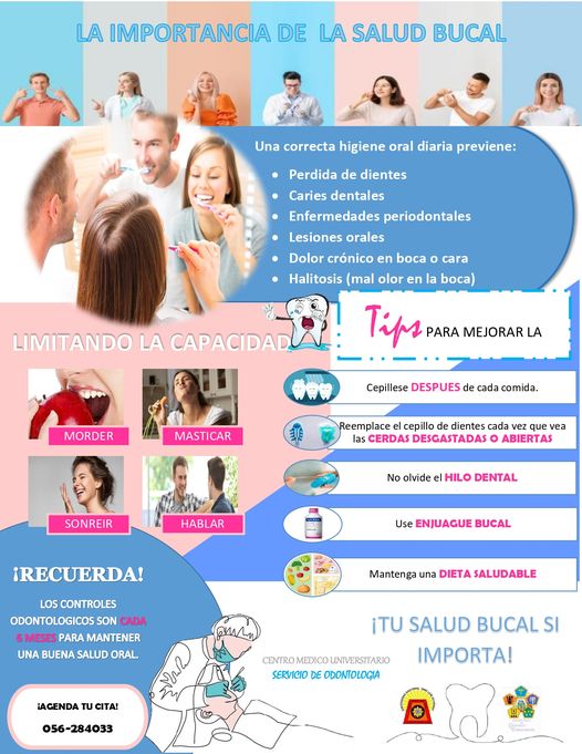 #Centromedicouniversitario/ Boletín educativo de salud, correspondiente al MES DE FEBRERO. EL servicio de Odontología invita a los estudiantes que separen su CITA para las atenciones Odontológicas.🦷