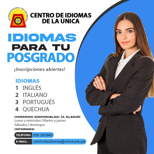 El Centro de Idiomas de la Universidad Nacional «San Luis Gonzaga» convoca a los profesionales estudiantes y egresados de la Escuela de Posgrado![]()