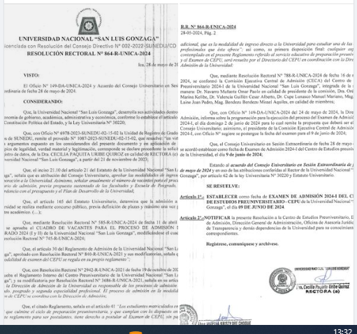 #CEPU2024 I Se comunica a los estudiantes del Centro de Estudios Pre universitario CEPU – UNICA, que mediante resolución rectoral n.º 864-R-UNICA-2024, el Consejo Universitario establece que el 9 de junio de 2024 se realizará el examen para el ciclo 2024-I.