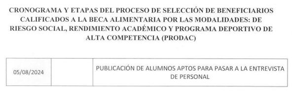 #direcciondebienestaruniversitario | Cronograma y etapas del proceso de selección de beneficiarios calificados a la beca alimentaria por las modalidades: de riesgo social, rendimiento académico y programa deportivo de alta competencia (PRODAC)