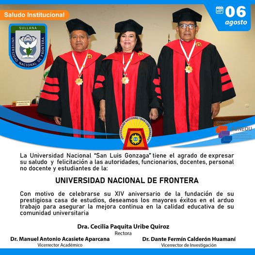 #SaludosInstitucionales2024 | La Universidad Nacional “San Luis Gonzaga” tiene el agrado de expresar su saludo y felicitación a las autoridades, funcionarios, docentes, personal no docente y estudiantes de la Universidad Nacional de Frontera
