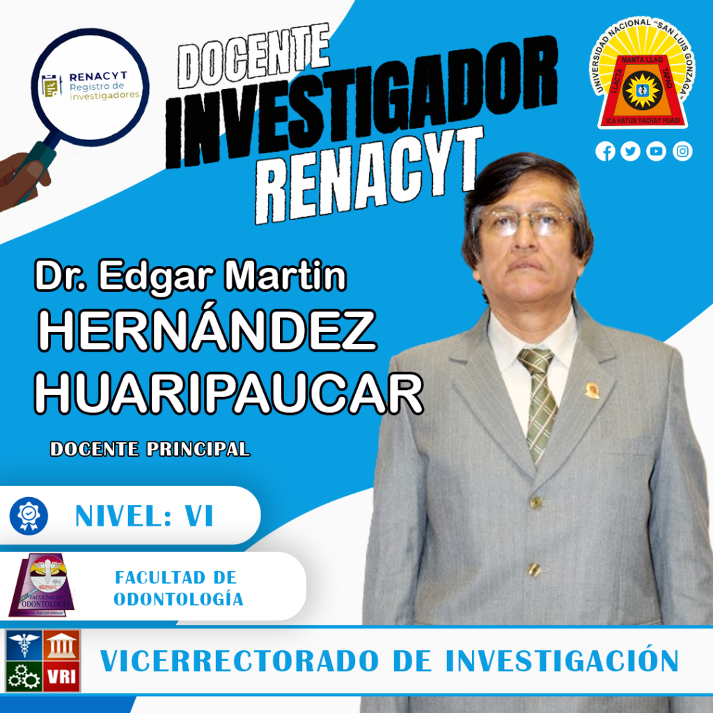 Autoridades y comunidad universitaria felicitan al Dr. Edgar Martin Hernández Huaripaucar, docente principal de nuestra universidad por integrar el grupo de docente INVESTIGADOR RENACYT reconocido por el Consejo Nacional de Ciencia, Tecnología e Innovación Tecnológica (Concytec) con el nivel VI.