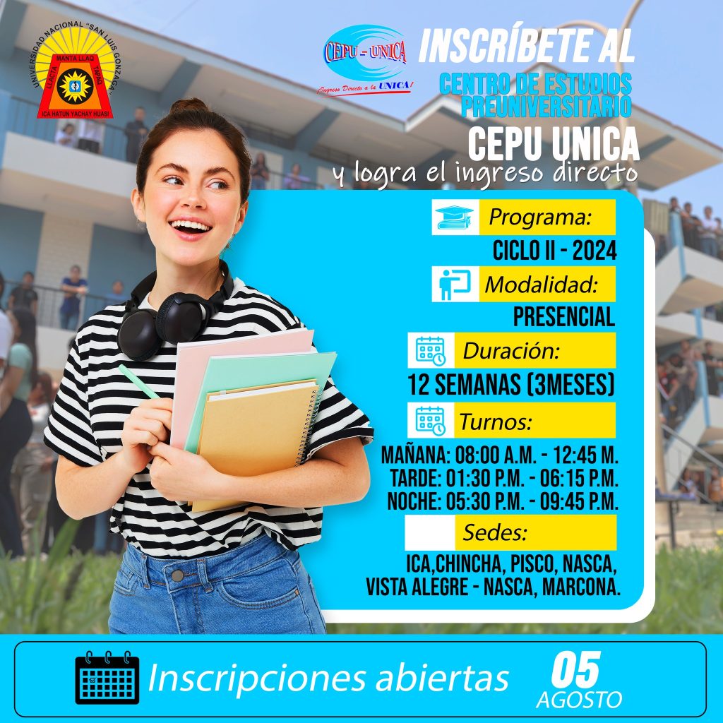 #CEPU2024_II | El Centro de Estudios Pre universitario CEPU – UNICA comunica el inicio de las inscripciones al ciclo 2024-II, a partir del 5 de agosto.