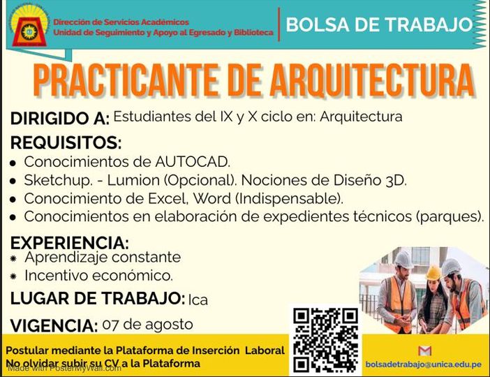 #OfertaLaboral | OFERTA LABORAL PRACTICANTE DE ARQUITECTURA