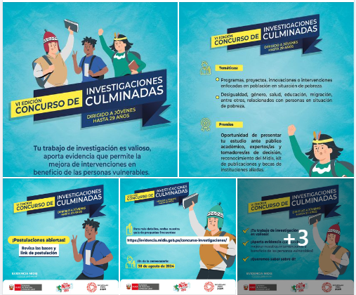 El Ministerio de Desarrollo e Inclusión Social (MIDIS) inició el proceso de postulación para el VI Concurso de Investigaciones Culminadas para Jóvenes 2024, que busca promover y apoyar los trabajos de investigadores menores de 29 años, con el objetivo de contribuir en la mejora de las políticas públicas y programas, proyectos o intervenciones dirigidos a atender a población en situación de pobreza o vulnerabilidad.