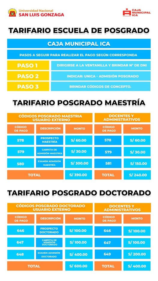 #EscuelaPosgrado | Pasos y códigos de pago para el examen de admisión de la Escuela de Posgrado de la Universidad Nacional San Luis Gonzaga.