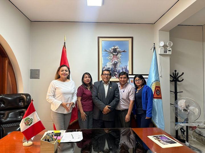 #Convenio | Con el fin de establecer convenio interinstitucional, el rector Dr. Dante Calderón Huamaní se reunió con el director general del Instituto Superior Pedagógico Agustín Bocanegra y Prada, Mg. Juan Oswaldo Hernández Legua, la jefa de la unidad académica Carmen Poma Cerón, la coordinadora de practica pre profesional Cecilia Laura García Huamaní y la regidora de la municipalidad de Nasca, Diana Cotaquispe Villena.