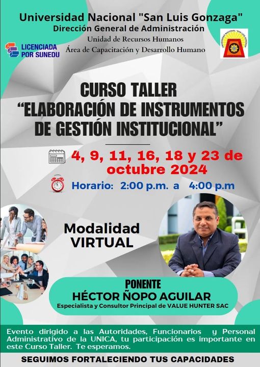 #Capacitación | RECORDATORIO: hoy miércoles 23-10-2024 – CURSO TALLER “ELABORACIÓN DE INSTRUMENTOS DE GESTIÓN INSTITUCIONAL”