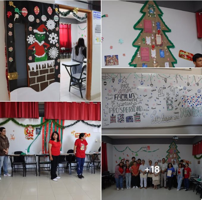 Felicitamos a todos los estudiantes, que participaron en la ambientación de aula, reflejando el trabajo en equipo y valorando las fiestas navideñas.