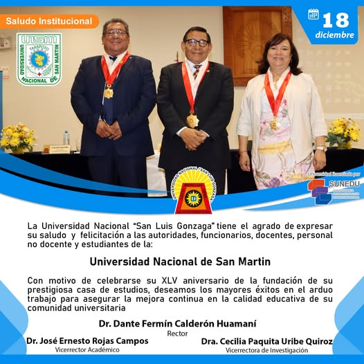 #SaludosInstitucionales2024 | La Universidad Nacional “San Luis Gonzaga” tiene el agrado de expresar su saludo y felicitación a las autoridades, funcionarios, docentes, personal no docente y estudiantes de la Universidad Nacional de San Martín – UNSM