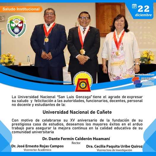 #SaludosInstitucionales2024 | La Universidad Nacional “San Luis Gonzaga” tiene el agrado de expresar su saludo y felicitación a las autoridades, funcionarios, docentes, personal no docente y estudiantes de la Universidad Nacional de Cañete