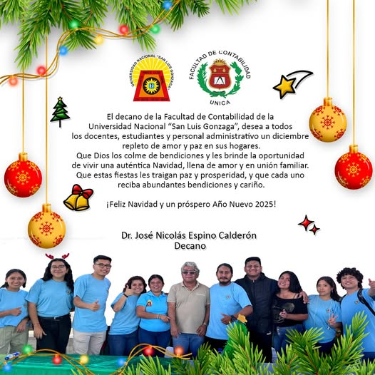 #Facultades | El decano de la Facultad de Contabilidad de la Universidad Nacional “San Luis Gonzaga”, desea a todos los docentes, estudiantes y personal administrativo un diciembre repleto de amor y paz en sus hogares.