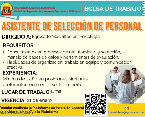 #OfertaLaboral | OFERTA LABORAL ASISTENTE DE SELECCIÒN DE PERSONAL