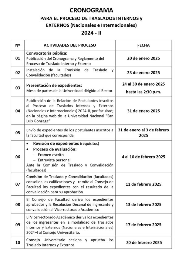 #Traslados | Cronograma para el proceso de traslados internos y externo (nacionales e internacionales) 2024-II.
