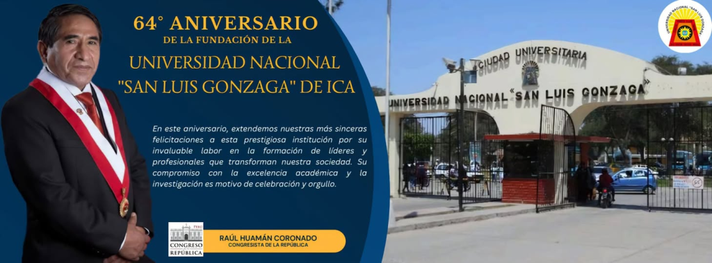 En este 64º Aniversario de Fundación de la Universidad Nacional San Luis Gonzaga de Ica, rendimos homenaje a su destacada trayectoria, que a lo largo de los años ha sido un referente de formación académica y liderazgo en nuestra región.![]()