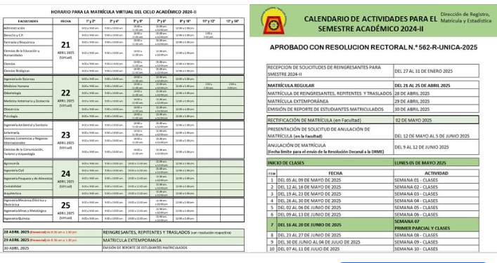 #Matrícula2024_II | La Dirección de Registro, Matrícula y Estadística de la Universidad Nacional «San Luis Gonzaga», de acuerdo con la resolución rectoral n.º 562-R-UNICA-2025, que aprueba el calendario de actividades para el semestre académico 2024-II, comunica el horario para la matricula virtual del semestre académico 2024-II, del 21 al 25 de abril de 2025.