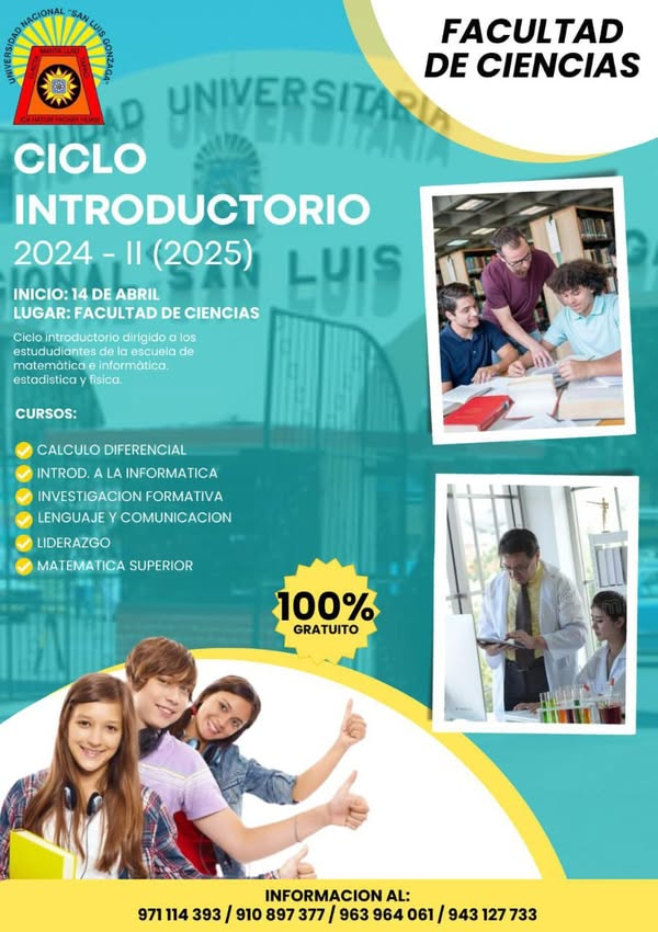 Este ciclo introductorio está dirigido a los estudiantes de la Escuela de Matemática e Informática, Estadística y Física.