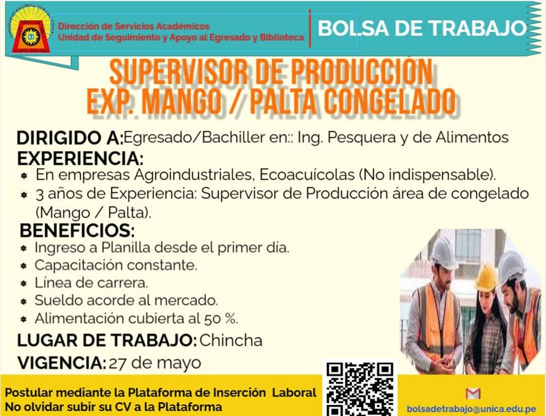 OFERTA LABORAL SUPERVISOR DE PRODUCCIÓN