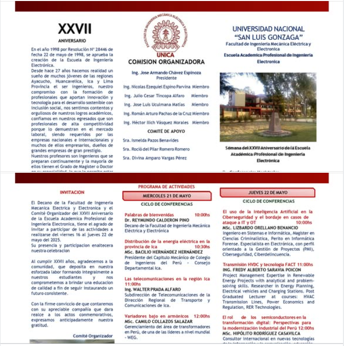 INVITACIÓN A LAS ACTIVIDADES POR XXVII ANIVERSARIO DE LA ESCUELA ACADÉMICA PROFESIONAL DE INGENIERÍA ELECTRÓNICA.