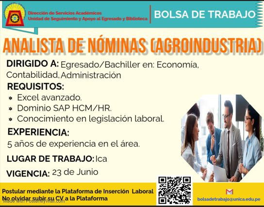 OFERTA LABORAL ANALISTA DE NÓMINAS (AGROINDUSTRIA)