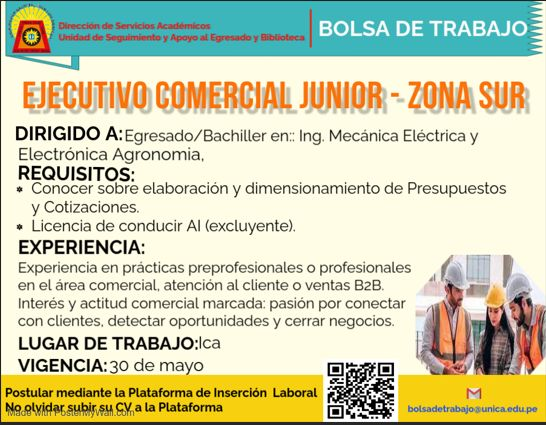 #OfertaLaboral | OFERTA LABORAL EJECUTIVO COMERCIAL JUNIOR – ZONA SUR