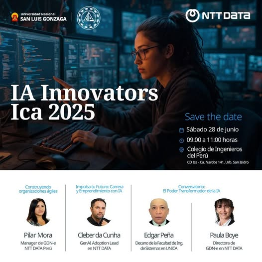 #IA| Innovators Ica 2025, Descubre cómo la inteligencia artificial generativa está transformando el mundo que nos rodea. Te invitamos a un espacio de ideas, inspiración y conversación sobre el impacto real de la IA en nuestras vidas, profesiones y proyectos.