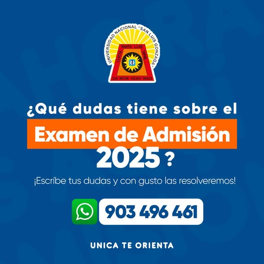 #UNICAteOrienta#Admisión2025#UNICA#UniversidadNacionalSanLuisGonzaga#Ica#Postulaya#Escríbenosya#ExamendeAdmisión2025