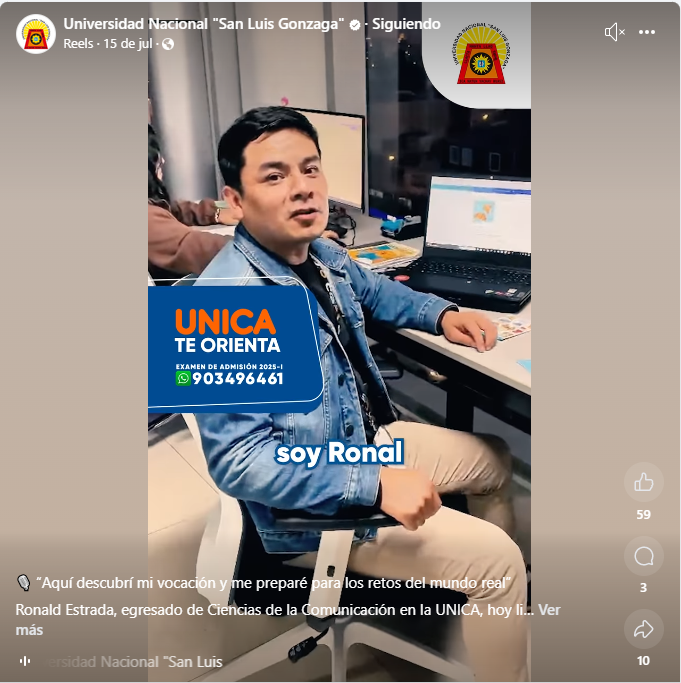 Ronald Estrada, egresado de Ciencias de la Comunicación en la UNICA, hoy lidera el área de marketing de una empresa con presencia en siete ciudades del país