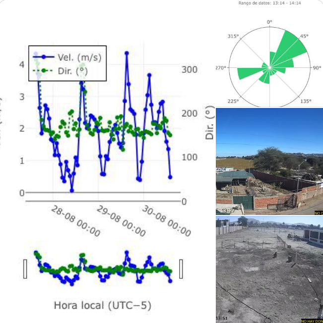 En Ica, la calidad del aire se ubica en nivel moderado, mientras que en Santiago se mantiene buena. El campo eléctrico permanece estable y dentro de parámetros normales. Los vientos soplan suavemente desde el estesureste, en condición de calma, lo que reduce el riesgo de levantamiento de polvo.